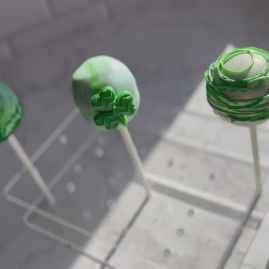 Celebrate St. Patrick's Day with our festive Holiday Theme Cake Pops! A Full dozen of delicious treats in flavors like Chocolate Chip-n-Brownie, Vanilla, or Brownie,.