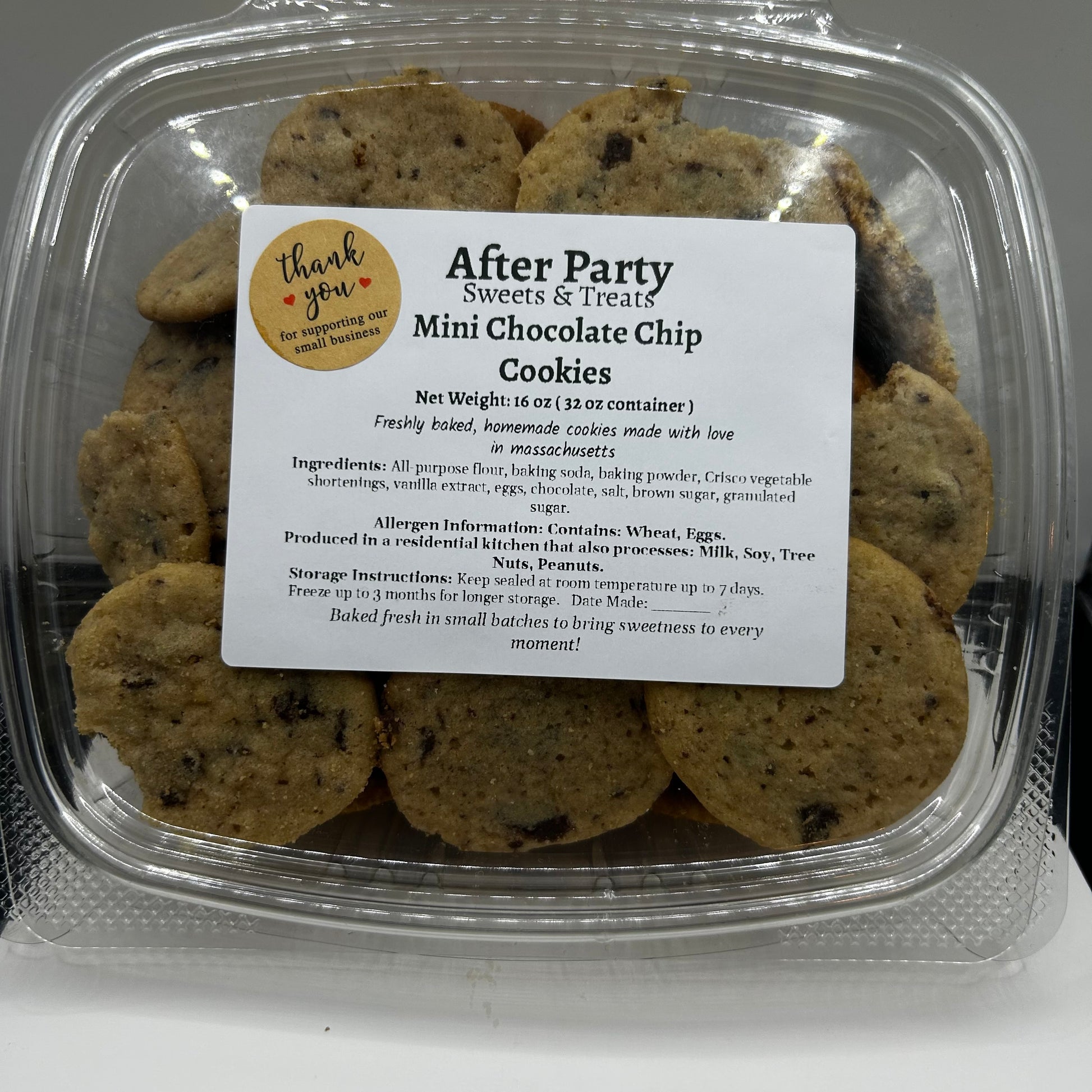Crispy on the outside, chewy on the inside — these homemade mini cookies come in a 32 oz container with about 50 chocolate-packed bites. Perfect for any occasion!